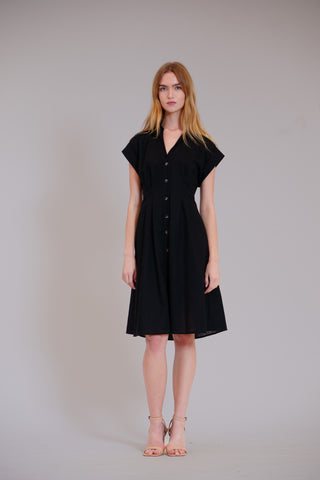 SQUARE NECK BASQUE WAIST SHORTDRESS W ROSETTE