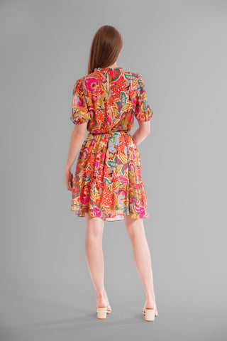 1 PC TIE NECK SHORT DRESS WITH LONG SLEEVES