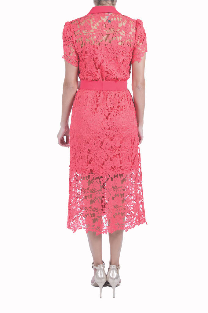 Fresh, flirty, and effortlessly polished, this short sleeve shirt dress features a classic collared neckline, a tailored silhouette that falls gracefully to the knees, and a delicate lace-like texture that adds a touch of feminine charm and modern sophistication—perfect for making a vibrant statement at daytime events, weekend outings, or casual chic gatherings.