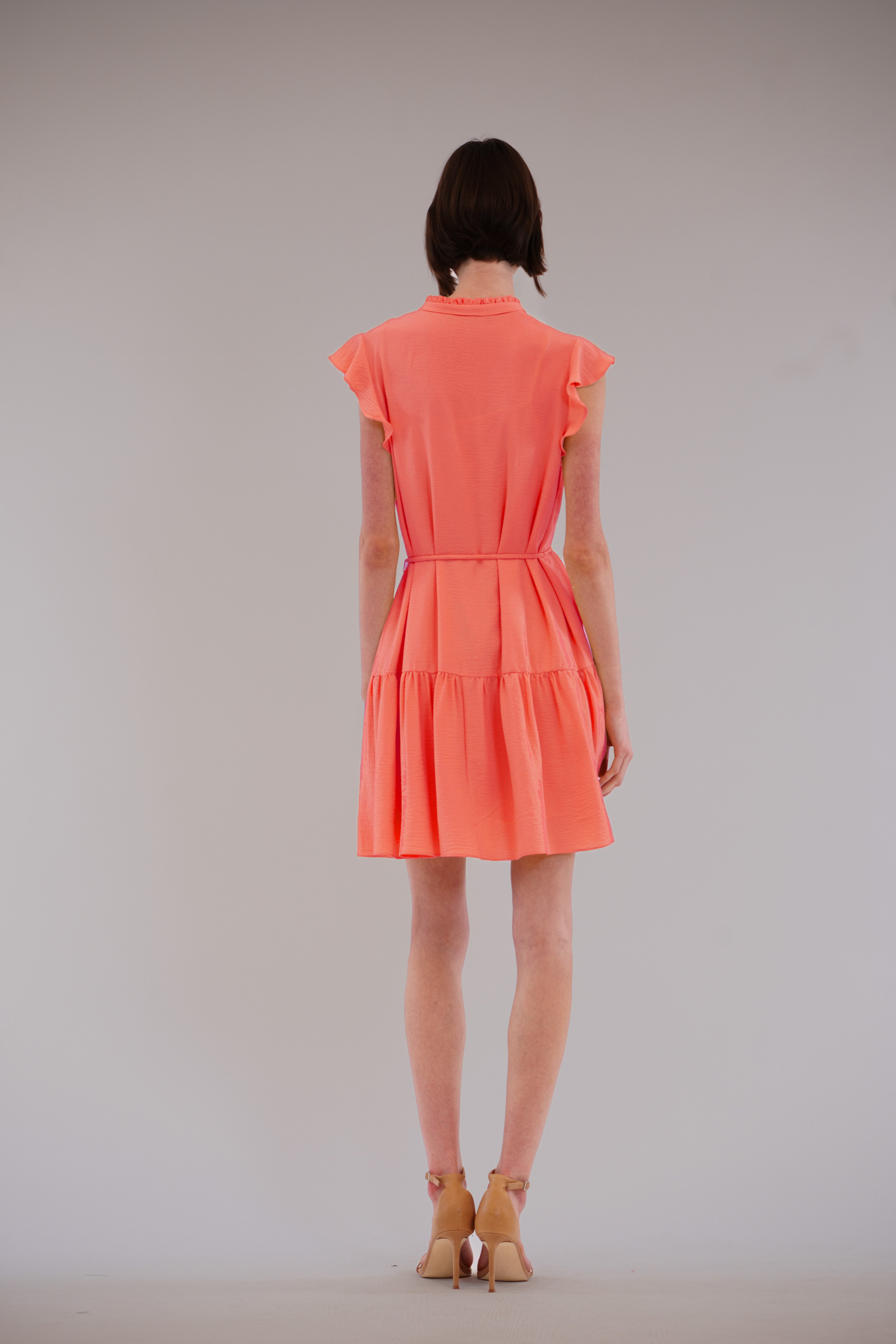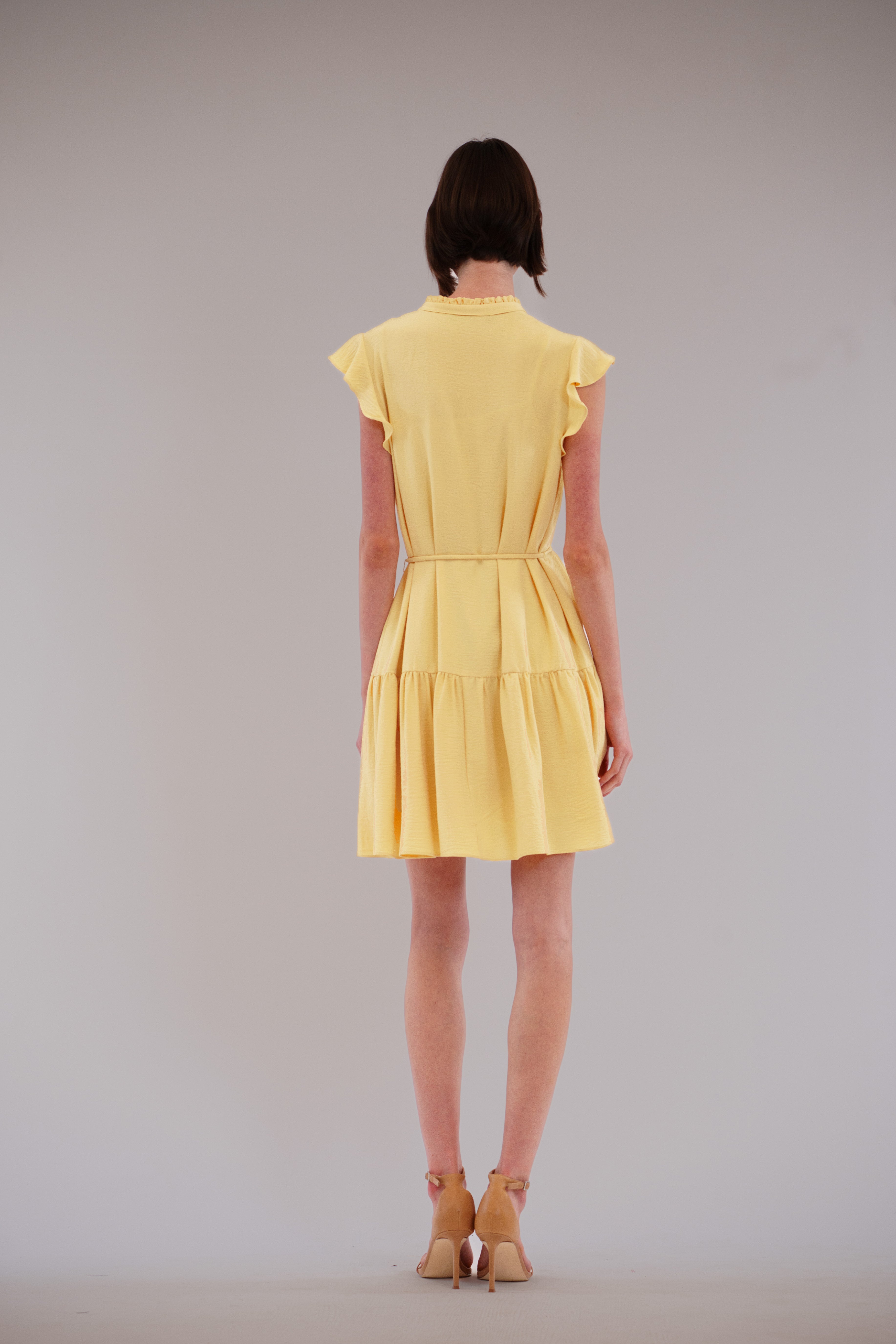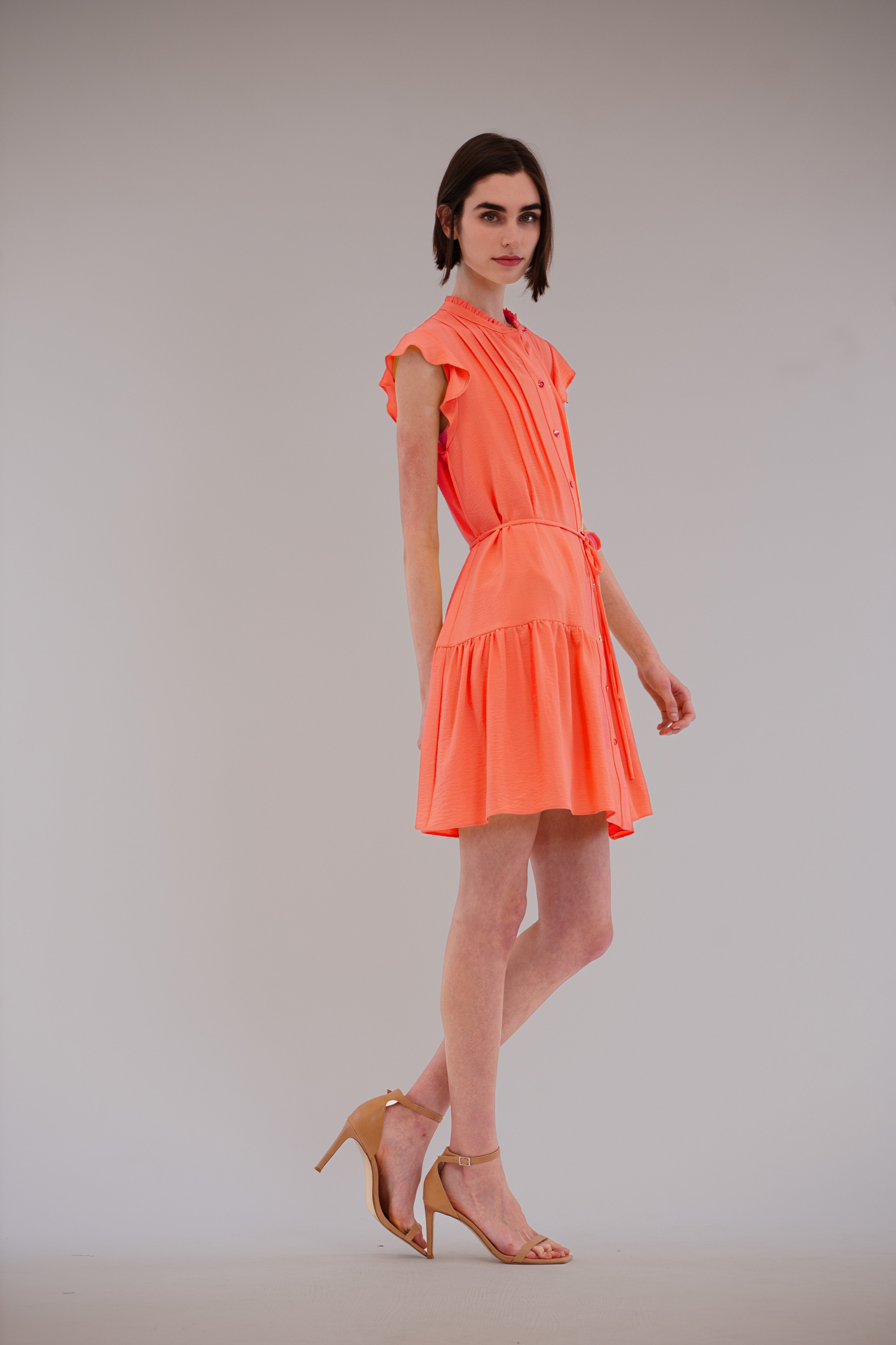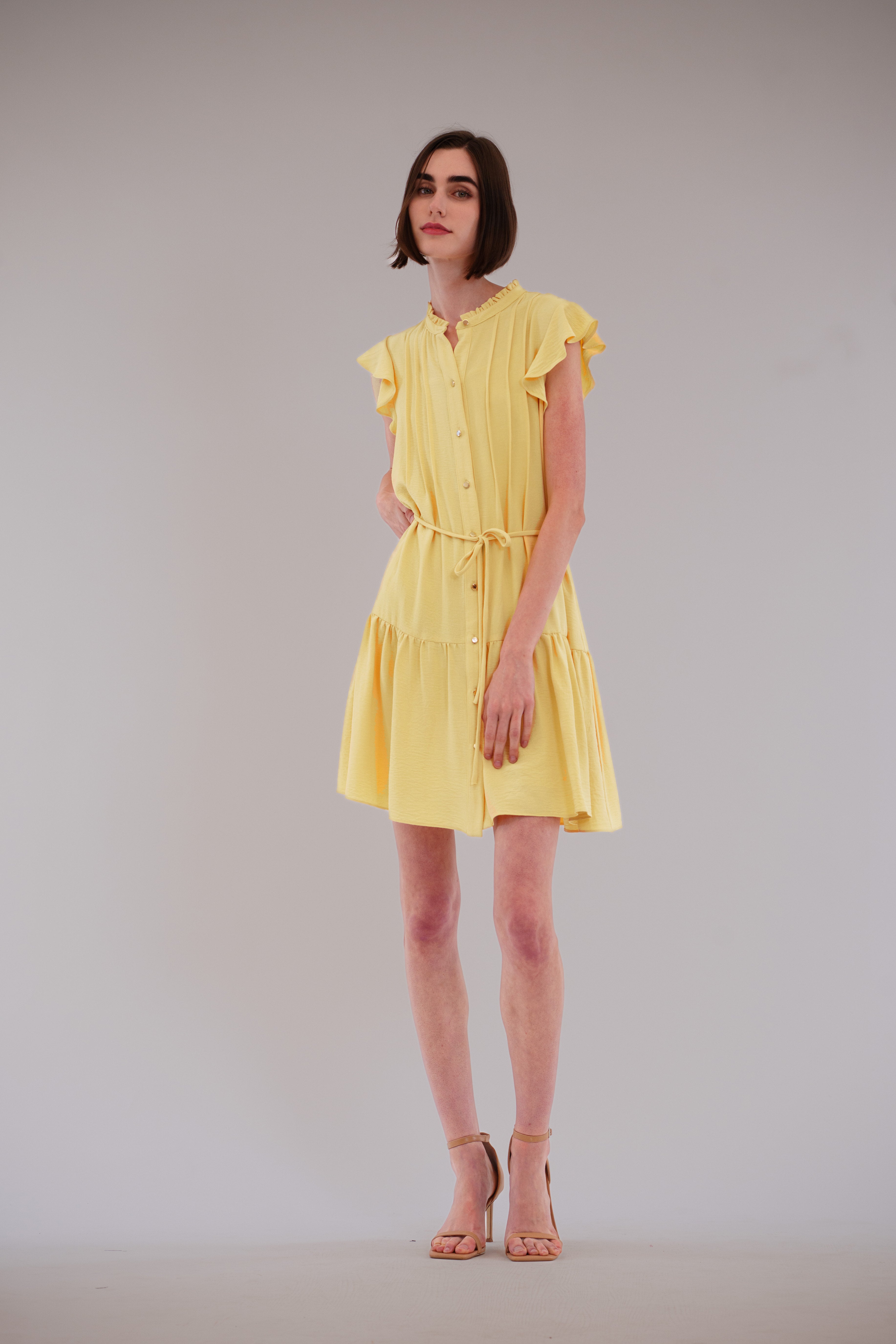 This best-selling mini dress in breezy washed linen—available in a range of flattering colors—charms with its airy flutter sleeves, soft pleat detailing, and a dainty spaghetti strap belt that cinches the waist just right, radiating fresh, feminine ease for daytime plans like lunch meetups, city errands, open-air cafés, or low-key celebrations that call for something effortlessly pretty.