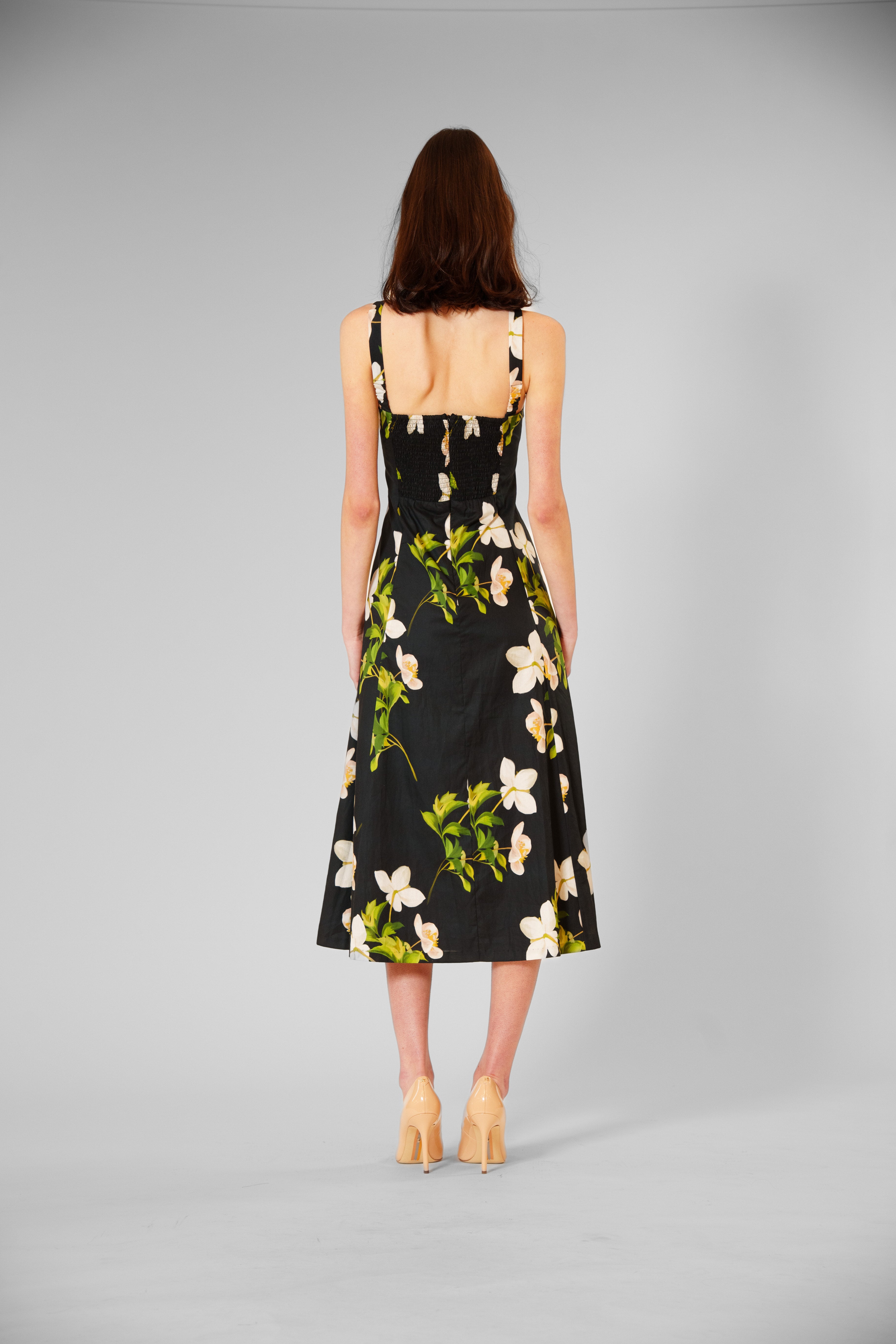 This effortlessly charming cotton dress, with its breezy silhouette, delicate smocked back, and lively floral print, radiates feminine grace and playful sophistication—ideal for everything from sipping iced lattes at a sidewalk café, to browsing weekend markets, to catching golden-hour light on a rooftop terrace—and it comes in two equally stunning colorways.