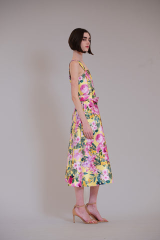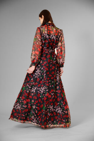 TIE NECK VELVET PRINT/ OVERLAY DRESS