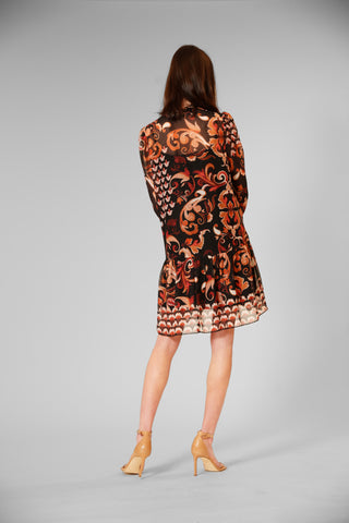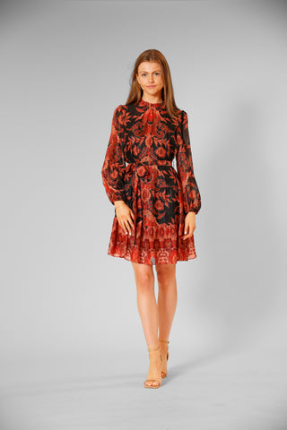 PRE-ORDER: LONG SLV SHORT FLOAT DRES W/ PLEATING DETAILS