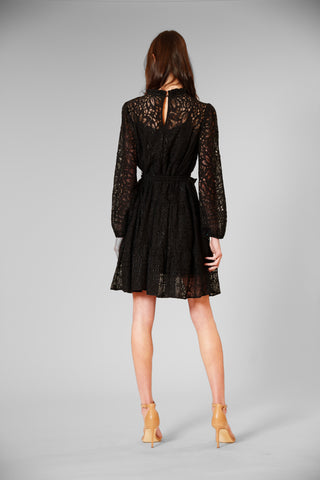 PRE-ORDER: TIE NECK POLKA DOT MESH/ OVERLAY DRESS W SASH