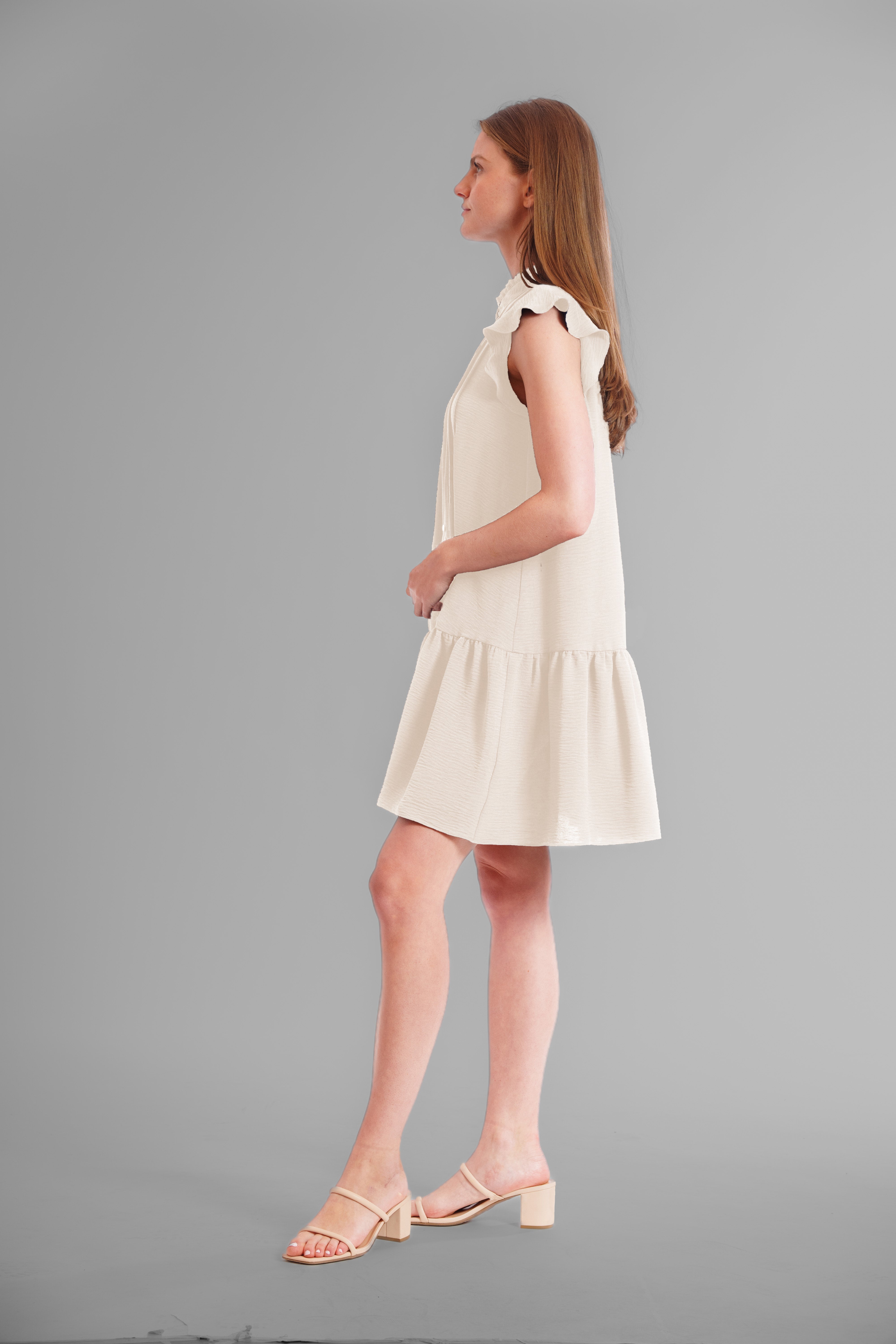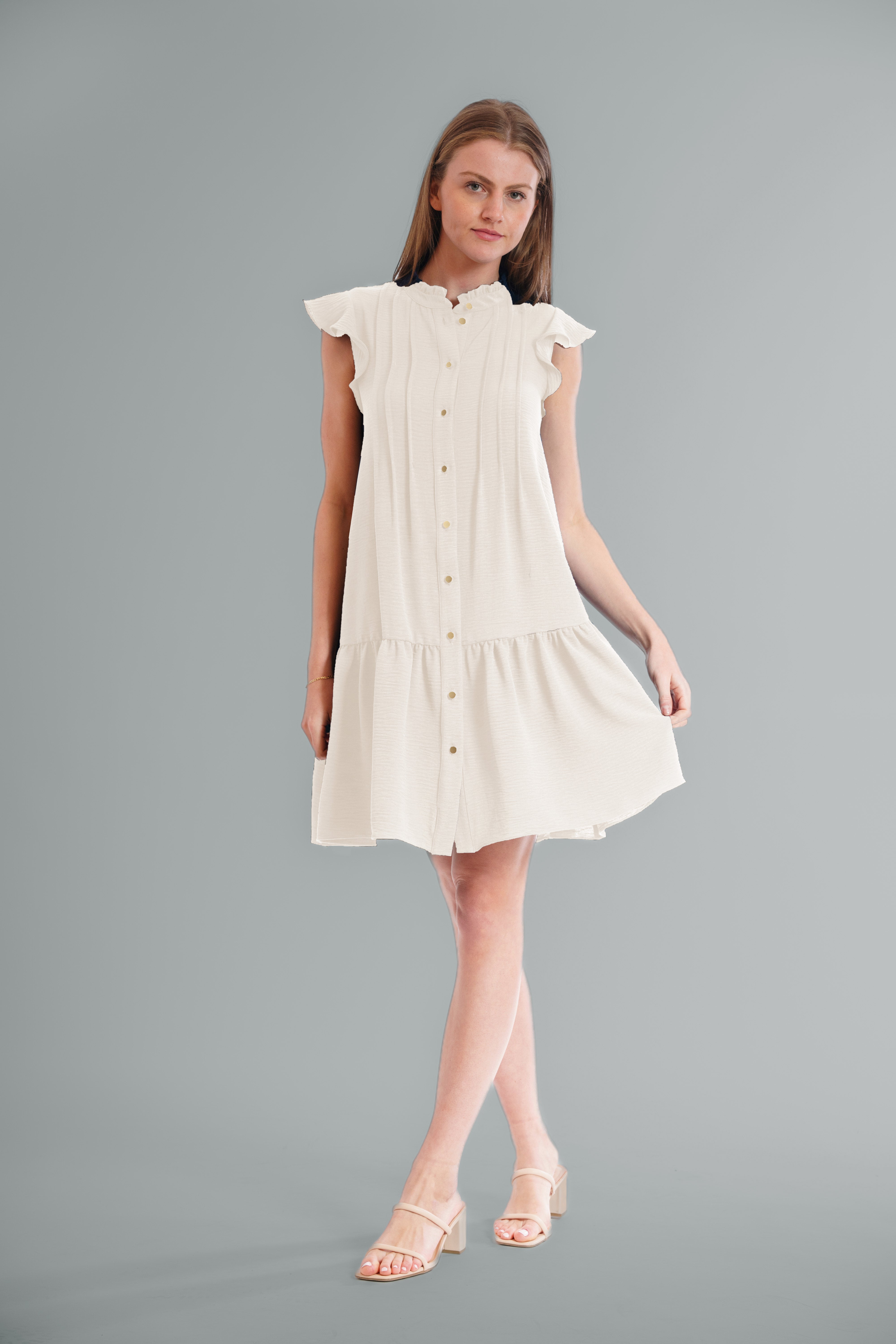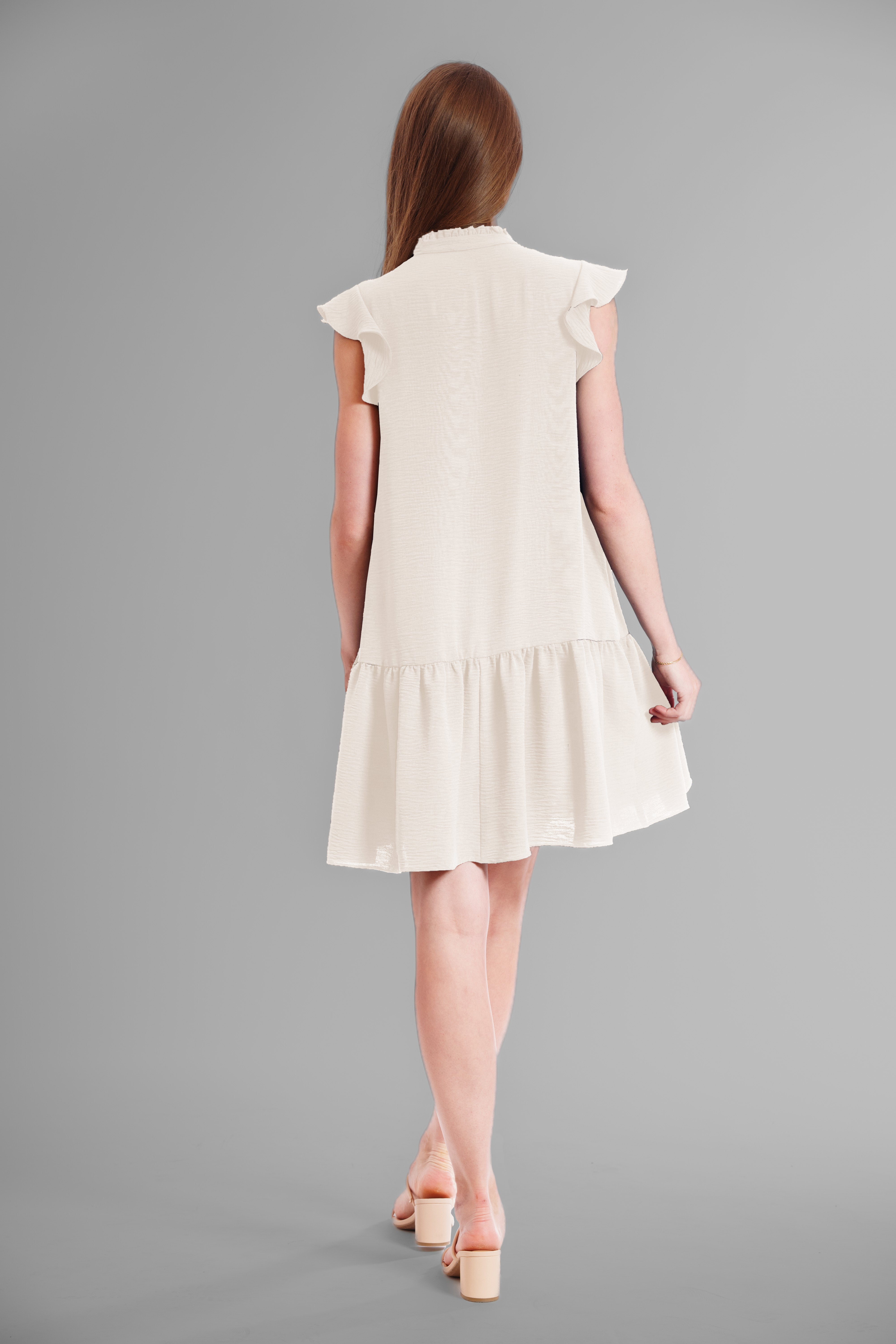 DescriptionThis best-selling mini dress in breezy washed linen—available in a range of flattering colors—charms with its airy flutter sleeves, soft pleat detailing, and a dainty spaghetti strap belt that cinches the waist just right, radiating fresh, feminine ease for daytime plans like lunch meetups, city errands, open-air cafés, or low-key celebrations that call for something effortlessly pretty.